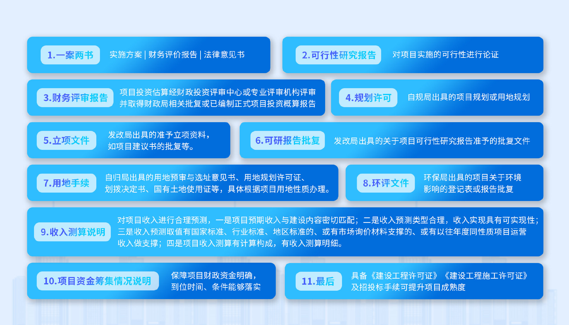 一是由專業(yè)機(jī)構(gòu)撰寫的項(xiàng)目實(shí)施方案(具體包括項(xiàng)目概況、投資測(cè)算、收益測(cè)算、平衡分析和測(cè)算附表),切忌方案強(qiáng)行平衡;