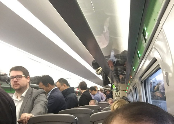 首先,由于空調問題,車廂里頭發了洪災……部分旅客無奈只能離開座位。