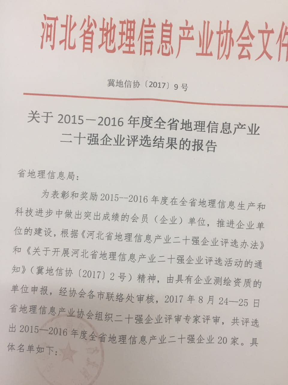 參觀時(shí)我去聽取了宣處長講話,局里領(lǐng)導(dǎo)對我單位高度認(rèn)可,今年我單位參加了《2015-2016年度全省地理信息產(chǎn)業(yè)二十強(qiáng)企業(yè)評選》,很榮幸評上2015-2016年度全省地理信息產(chǎn)業(yè)二十強(qiáng)企業(yè),對于以后的測繪工作,我們單位也會再接再厲,努力創(chuàng)出更多佳績。