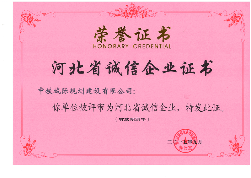 長期以來,中鐵城際規(guī)劃建設(shè)有限公司始終高度重視契約精神,守法經(jīng)營、守合同重信用,以誠信經(jīng)營促進(jìn)企業(yè)的發(fā)展壯大。