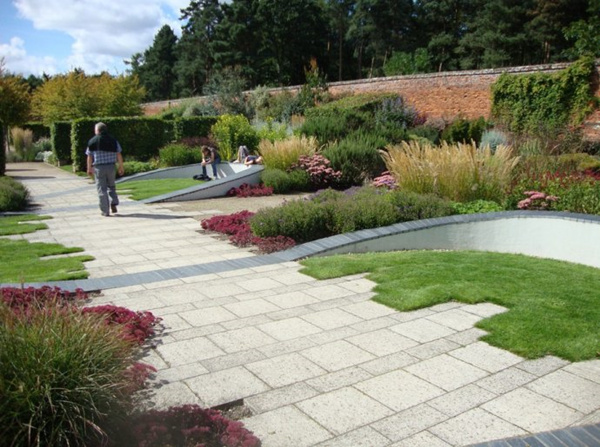 (2)鋪裝材料及鋪砌方式要統(tǒng)一,不宜變化太多。道路鋪裝要整齊、簡(jiǎn)潔。一條園路用同一種形式的鋪裝較好,同一條園路上不宜進(jìn)行太多的鋪裝變化,要服從整體的空間需要。一個(gè)空間中所用的鋪裝材料及拼砌圖案也不要過(guò)多,材料的過(guò)多變化或者過(guò)于繁瑣復(fù)雜的拼砌圖案容易造成雜亂無(wú)章的感覺(jué)。