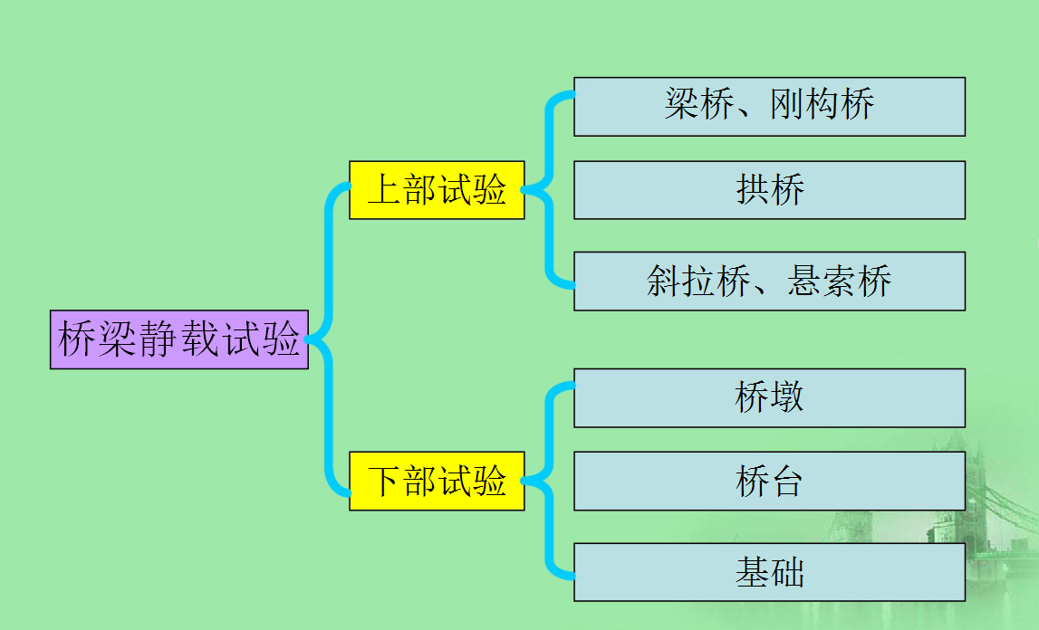 橋梁靜載實驗主要是為了解決以下問題:檢驗橋梁結構的設計與施工質量,驗證結構的安全性與可靠性。驗證橋梁結構的設計理論與計算方法,充實與完善橋梁結構的計算理論與施工技術資料;掌握橋梁結構的工作性能,判斷橋梁結構的實際承載能力。