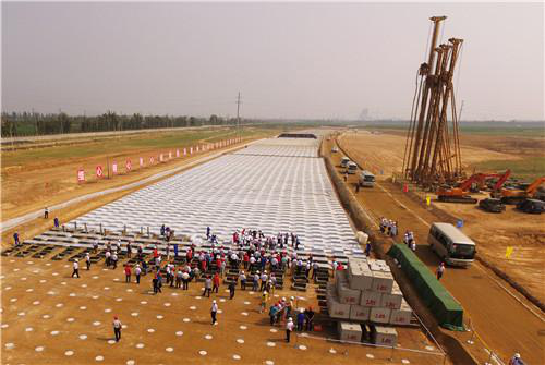 由于CFG樁改善了碎石樁的剛性,使其不僅能很好地發(fā)揮全樁的側阻作用,同時也能很好地發(fā)揮其端阻作用。因此,得以廣泛采用,并取得良好的經濟和社會效益。CFG為樁體中摻加適量石屑、粉煤灰和水泥加水拌和,制成一種粘結強度較高的樁體,與樁間土和褥墊層一起構成CFG樁復合地基。樁,樁間土與基礎之間必須設置一定厚度的褥墊層,即褥墊層是高粘結強度樁復合地基的一部分。