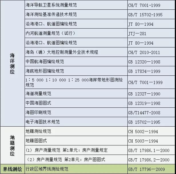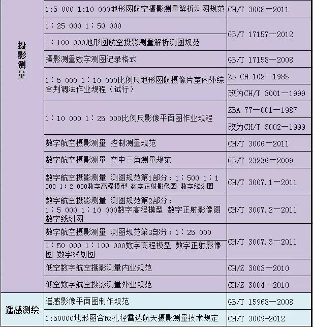 測繪專業(yè)國家及行業(yè)標(biāo)準(zhǔn)匯總