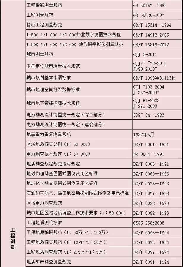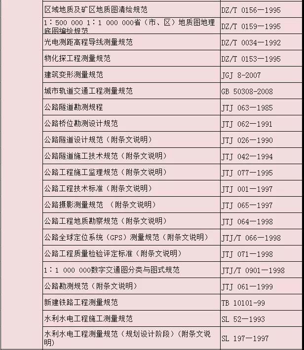 測繪專業(yè)相關(guān)標(biāo)準(zhǔn)大全
