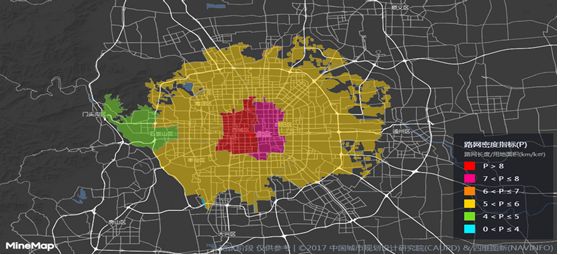 依托大數據平臺Minedata,中規院聯合四維圖新打造了一個以路網為基礎的數據可視化平臺,實現了城市道路網絡的動態監測,克服了傳統城市工作中道路網密度統計標準不統一、數據更新時效性差等問題,為合理控制城市道路網密度、促進城市交通規劃的落實提供了有效支持。