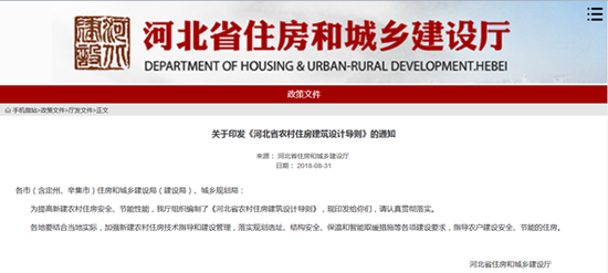 《河北省農村住房建筑設計導則》近日出臺,農村住房建設有了標準