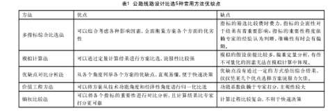 上述5種方法是公路設計方案比選中的常用方法,不同的方法各有其優缺點,現在對這些常用方法的優缺點進行評析,以期能使之在實踐中得到更好的應用.這5種方法的優缺點見表1所示.