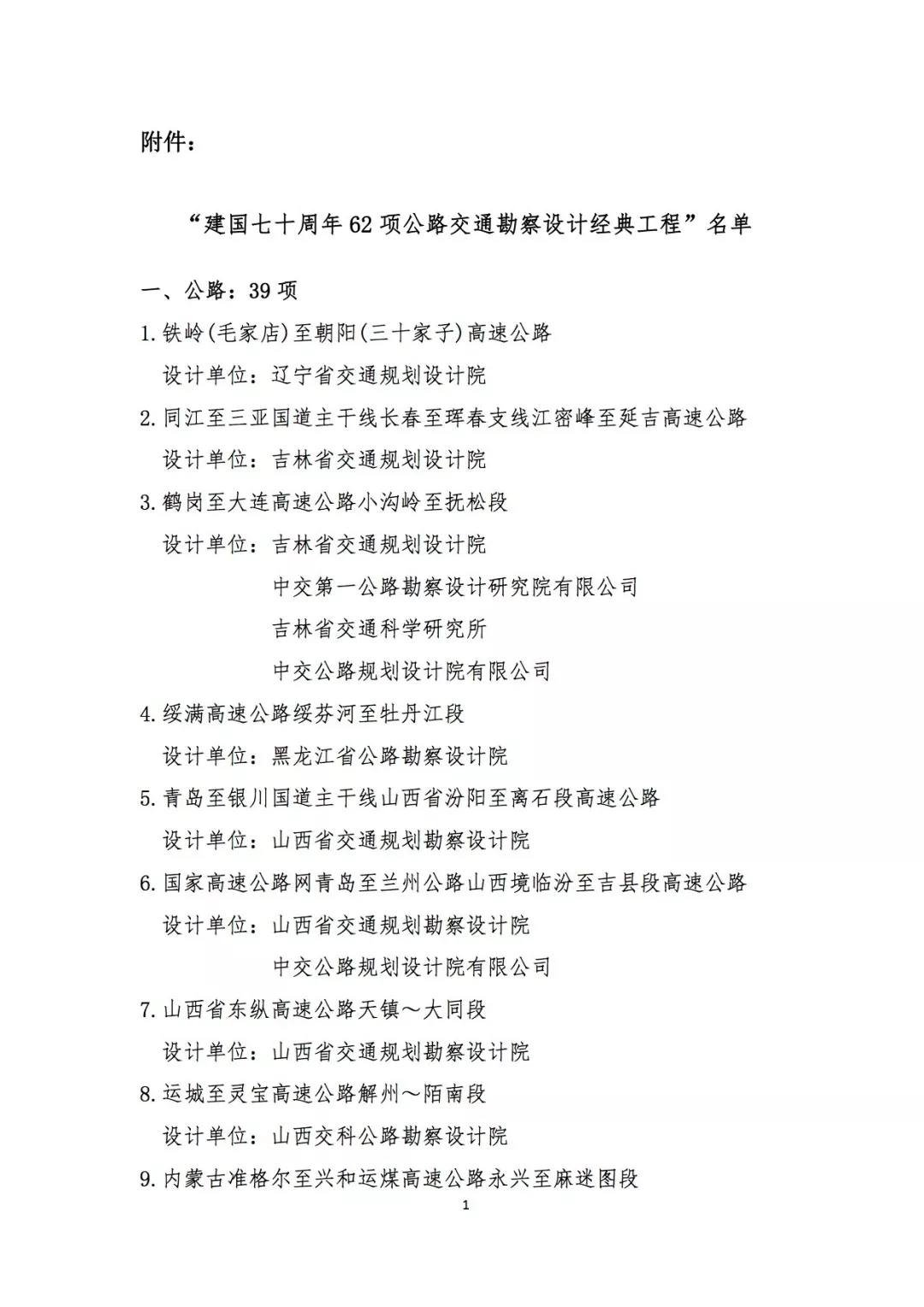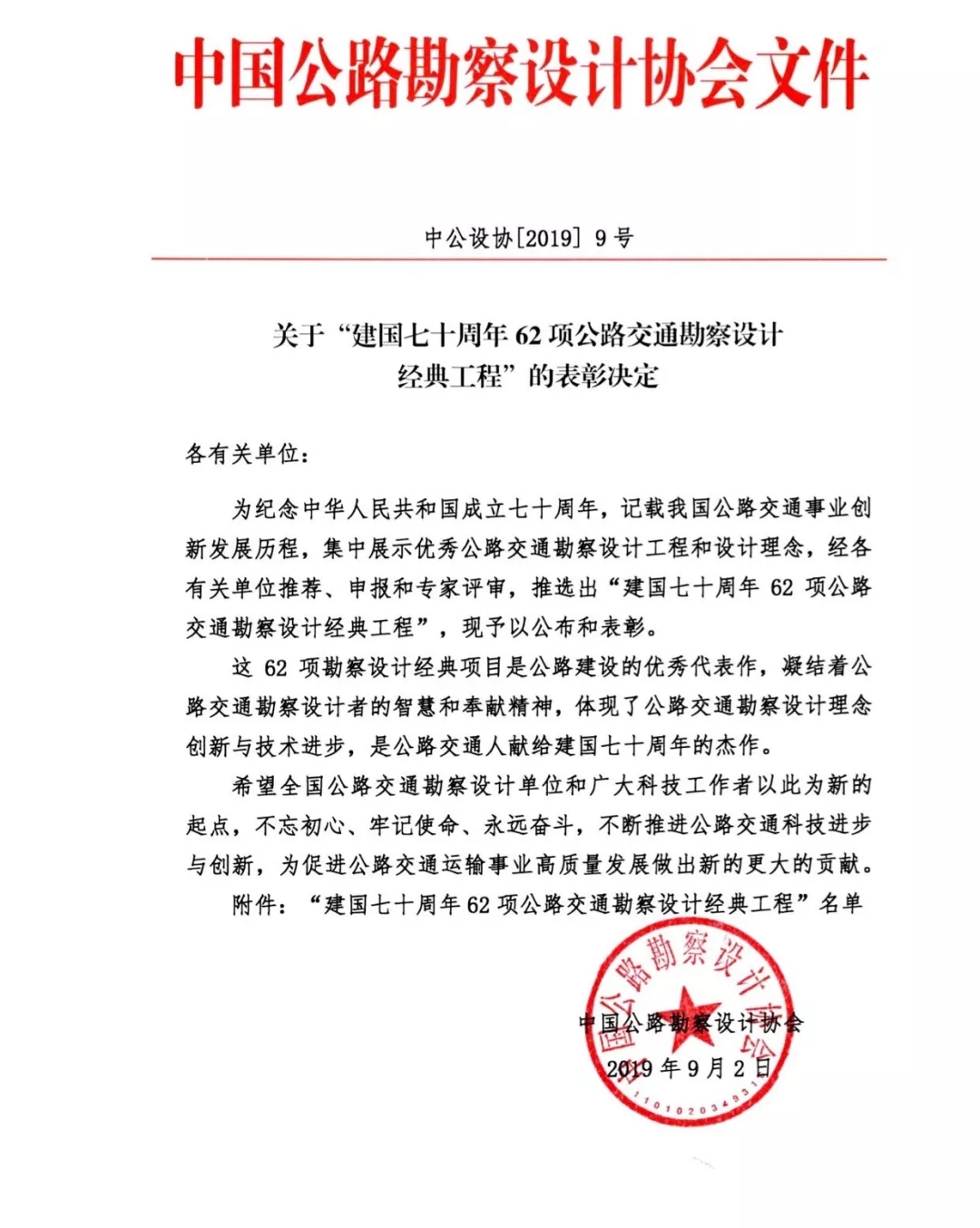 中國公路勘察設計協會表彰62項“建國七十周年公路交通勘察設計經典工程”
