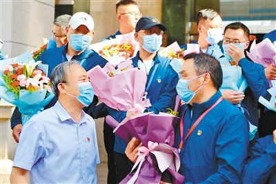 本報(bào)訊 昨天下午,國測一大隊(duì)負(fù)責(zé)珠峰高程測繪的首批29名測繪隊(duì)員回到西安,鮮花和掌聲表達(dá)著大家對(duì)這些測繪英雄們的敬意!