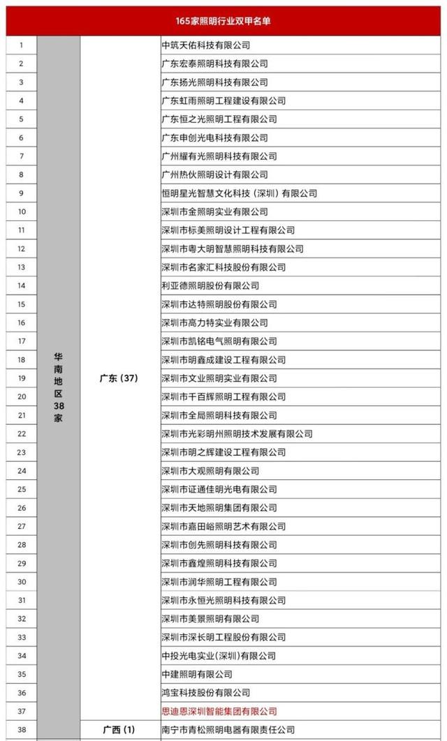 截止目前,全國(guó)擁有照明雙甲資質(zhì)的企業(yè)達(dá)到166家,分布在我國(guó)七大區(qū)域,其中華南38家,華東60家,華北18家,華中21家,西北8家,西南17家,東北4家。