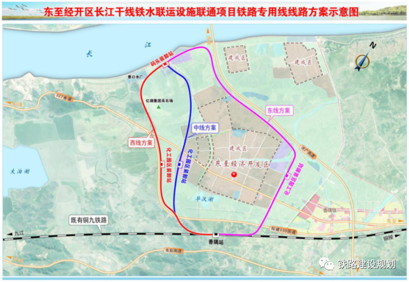 東至經開區鐵水聯運設施聯通項目(鐵路專用線),位于安徽省池州市東至縣經濟開發區,接軌既有銅九鐵路香隅站,并設置7.85km鐵路專用線連通長江碼頭以實現鐵水聯運的運輸方式。工程投資約8.7億元。全線設車站3座,其中接軌站1座、裝卸站2座(化工園區裝卸站及碼頭裝卸站),正線新建大橋1座/118.9m,新建中橋1座/59.0m。