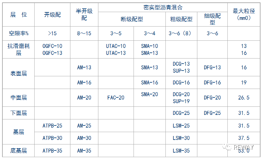 (1)各級公路均宜選用半剛性材料做基層、底基層。為減少水損害和低溫裂縫,對水泥穩定粒料類,石灰、粉煤灰穩定粒料類的上基層,其混合料級配組成設計宜用骨架密實型結構,以提高半剛性基層的抗沖刷、抗開裂、抗凍的性能,并可減少表面浮漿,利于層間緊密結合。