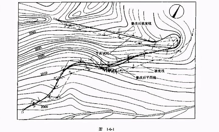 在路線全面布局中所擬定的主要控制點之間,根據地形、地質水文等情況,自上而下用粗略試坡的方法確定中間控制點,確定路線輪廓方案。