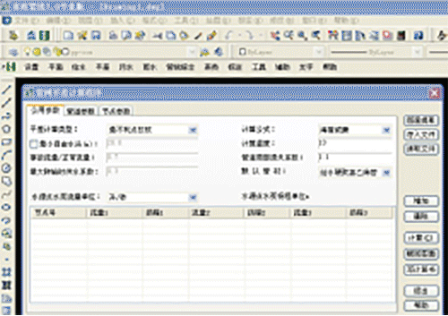 該集鎮(zhèn)供水工程設(shè)計(jì)供水范圍為集鎮(zhèn)鎮(zhèn)區(qū)。在選取水源,從水源取水,通過原水輸水管將原水輸送到水廠,經(jīng)處理后的水通過清水輸水管送至500m3高位水池統(tǒng)一供水至配水管網(wǎng)。以下介紹該集鎮(zhèn)區(qū)配水管網(wǎng)的平差計(jì)算。圖3為鴻業(yè)市政管線軟件的工作界面。