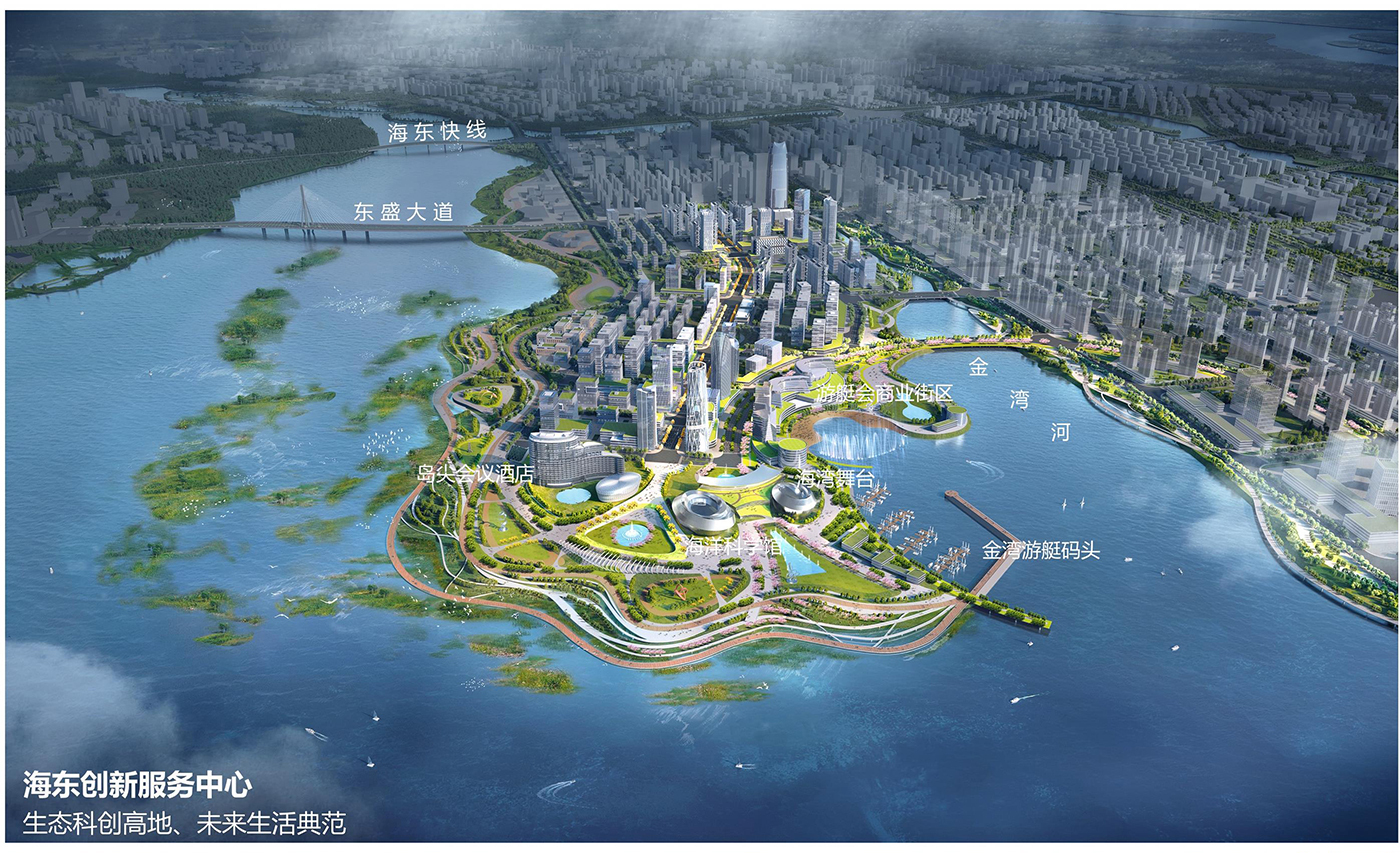 打造海東新區(qū)的生態(tài)創(chuàng)新高地,樹立一灣兩岸創(chuàng)新生活典范。延續(xù)歷版規(guī)劃中的生態(tài)內(nèi)灣,同時(shí)將生態(tài)岸線延伸至北岸,形成龍王灣環(huán)島濕地公園。濱海一線實(shí)施低強(qiáng)度開發(fā),內(nèi)陸開發(fā)強(qiáng)度梯度式提升,將商娛、科普功能融入濱海濕地公園,提升濱?;盍Α?/p>