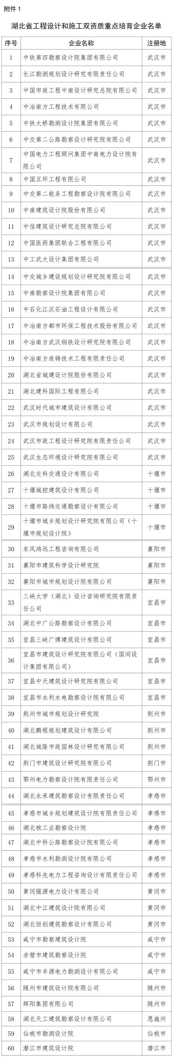 1月3日,湖北省住建廳發(fā)布《關(guān)于加快培育湖北省工程設(shè)計(jì)和施工雙資質(zhì)重點(diǎn)企業(yè)的通知》。