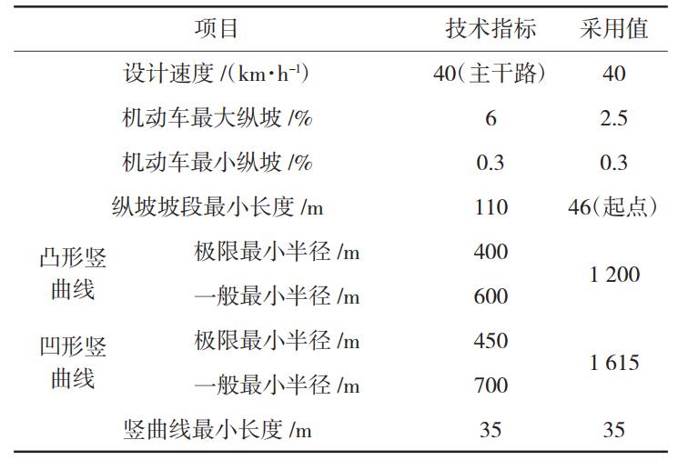 表 2 縱斷面線形標準及設(shè)計采用值匯總
