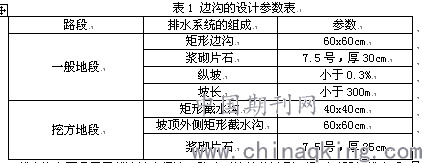 路基的地面排水主要是采取設(shè)置貫通全線的邊溝來進(jìn)行的,邊溝的設(shè)計(jì)參數(shù)如下表1所示。