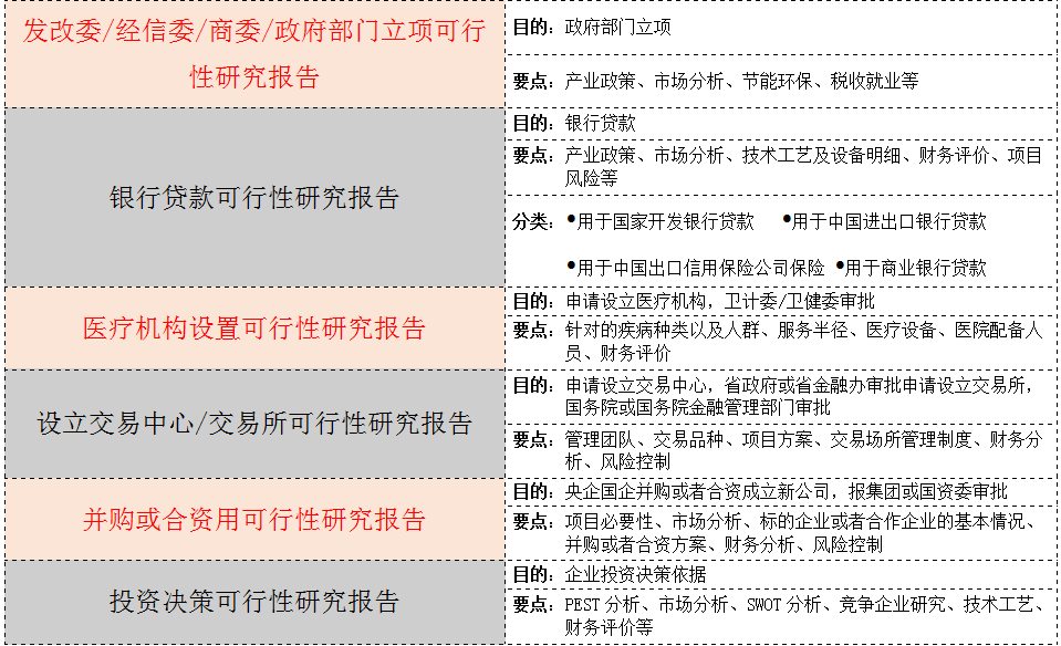 各類可行性研究報(bào)告內(nèi)容側(cè)重點(diǎn)差異較大,但一般應(yīng)包括以下內(nèi)容: