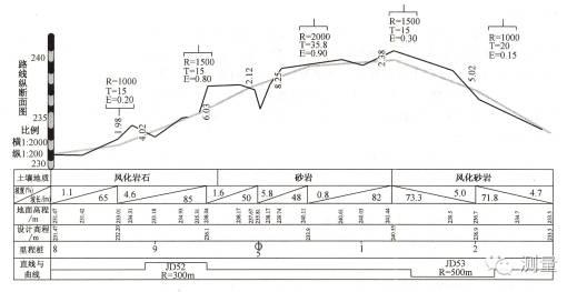 注意:符號中部的豎線的橫坐標就是豎曲線轉點里程,符號的水平線兩端的橫坐標應分別是豎曲線的起點和終點里程。為圖形美觀,各豎線標志符號應大致在同一個高度。
