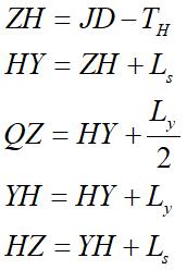 YH—圓緩(第二緩和曲線起點)